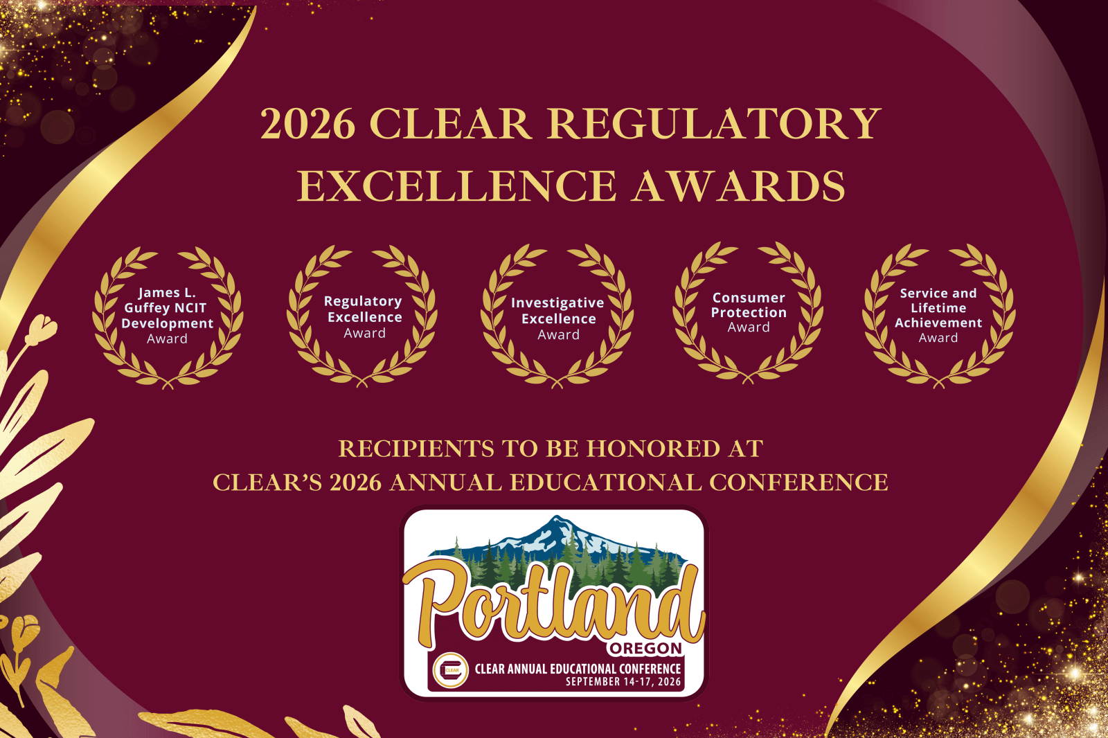 CLEAR's 2026 Regulatory Excellence Awards will be presented at the Annual Educational Conference in Portland, Oregon, September 14 - 17, 2026.